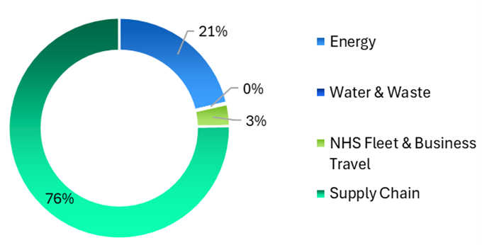 We recently completed an assessment of our supply chain emissions, using carbon factors per £ spent on different procurement categories (see Figure 3). This initial assessment does not include emissions from staff commuting and patient and visitor travel data but still indicates that the emissions we influence are at least three times our controllable emissions (shown in Figure 4).