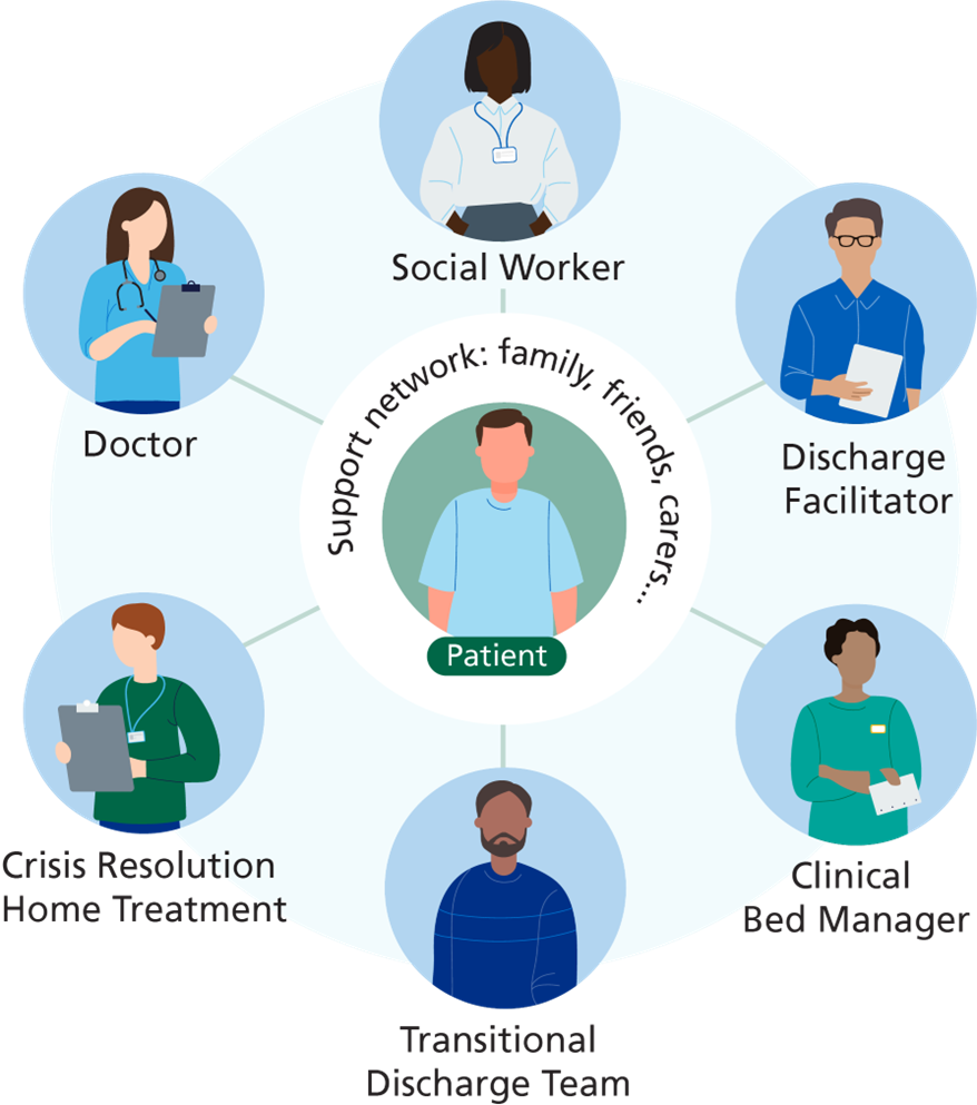We aim to start planning each person’s discharge as soon as we admit them to hospital. It’s a team effort that provides support to each patient and their family, friends, and carers.
